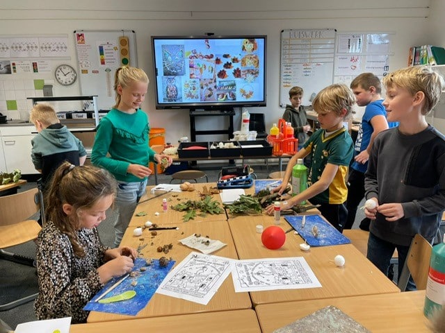 Spelenderwijs vergaren de leerlingen op deze manier veel kennis over de natuur in de herfst in combinatie met het erfgoed van het Luntersche Buurtbosch, dat hier zo mooi bij aansluit.