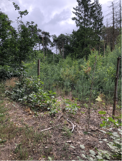 Dat ‘afgrazen’ van jonge bomen kan zo erg zijn, dat alles afsterft. Het raster is zo hoog gemaakt dat het al het ree-wild tegenhoudt. Kleine dieren zoals haas of das kunnen ongestoord door het gebied gaan. Het raster is tijdelijk. Zodra de bomen hoog en groot genoeg zijn dat de reeën de toppen er niet meer uit kunnen eten, wordt het raster weer verwijderd. Dit kan echter wel enkele jaren duren.